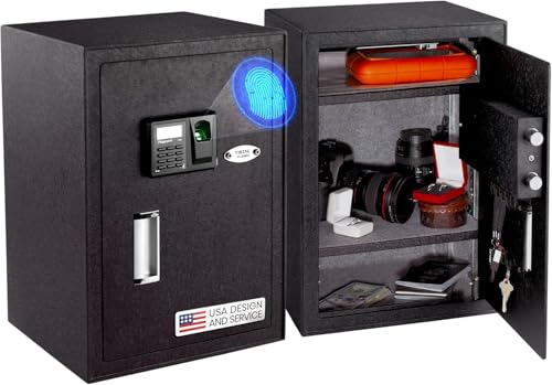 A digital keypad, 500 DPI fingerprint sensor, and LCD monitor are all included in the VS-50BLX Viking Security Home Safe.